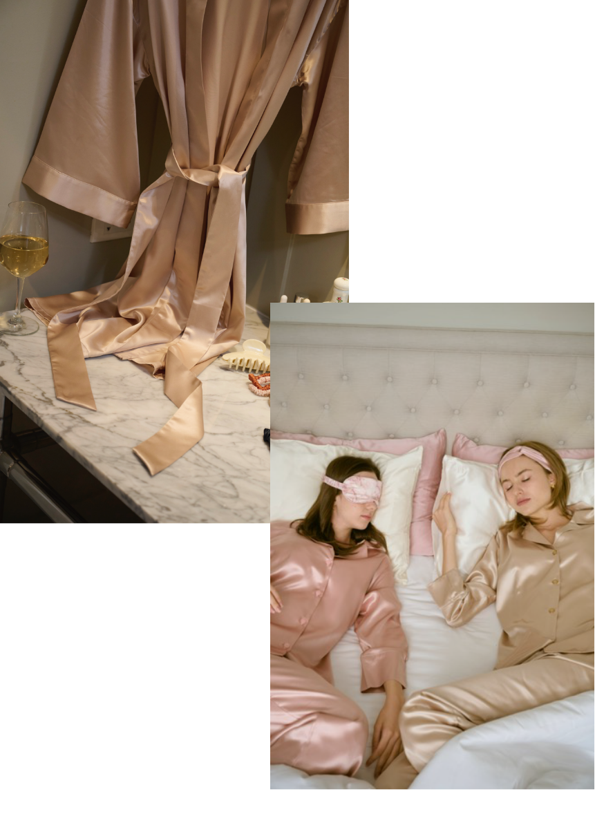 Our range of exquisite self-love tools includes silkwear, sleepwear, loungewear, bedding, and other things we call self-care accessories. As self-love enthusiasts, we passionately seek our the most exceptional solutions to create opulent experiences and indulgences for you. Every single piece is thoughtfully designed, crafted from the finest quality materials and created with uncompromising attention to details, ensuring an unparalleled sense of timeless luxury.